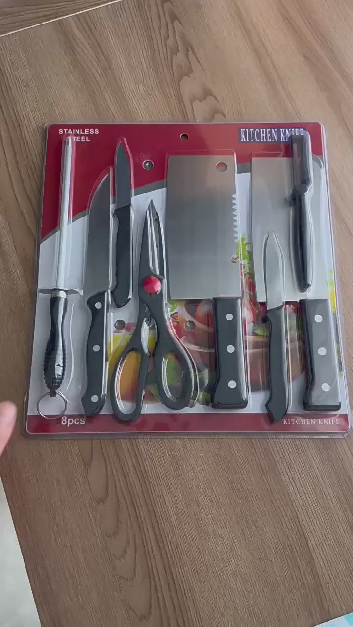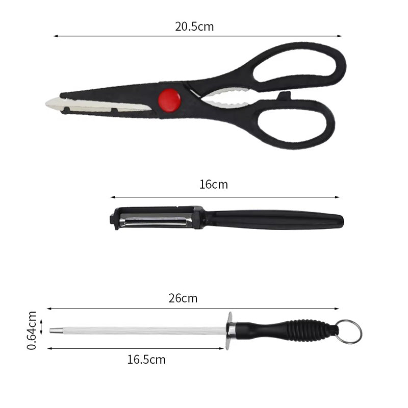 ✔️ Incluye cuchillo chef, cuchillo para pan, cuchillo de cocina, cuchillo para filetear, cuchillo para pelar, tijeras de cocina, afilador
